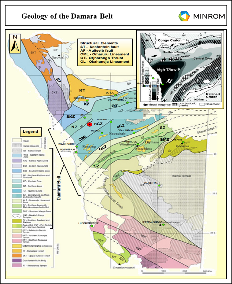 This iron ore project is situated within the geologically renowned Damara Belt. This belt formed from a series of rifting, convergence, and collisional events that produced five (5) distinct NE-trending tectono-metamorphic, orogen strike-parallel zones with the zone of interest for this project being the Southern Marginal Zone (Figure 1).